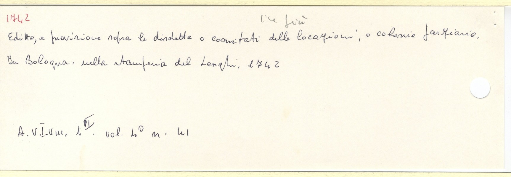 Scheda n. 5483 Anno: 1742 - Tipografo: Longhi (Es. n. 2) | <indietro avanti > |