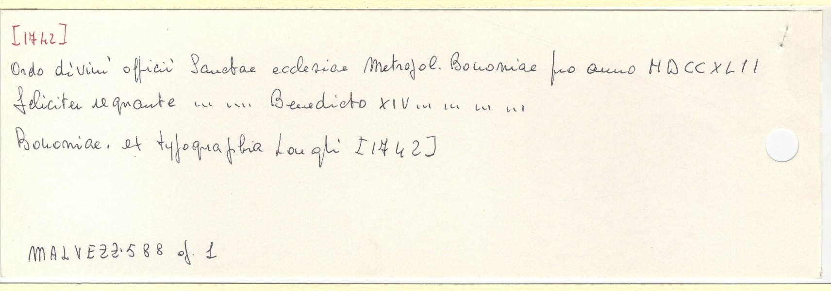 Scheda n. 5485 Anno: 1742 - Tipografo: Longhi (Es. n. 1) | <indietro avanti > |
