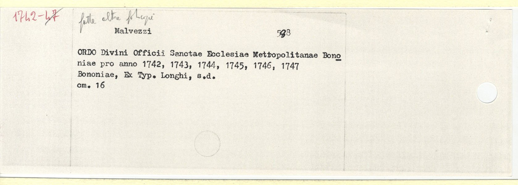 Scheda n. 5486 Anno: 1742 - Tipografo: Longhi (Es. n. 2) | <indietro avanti > |