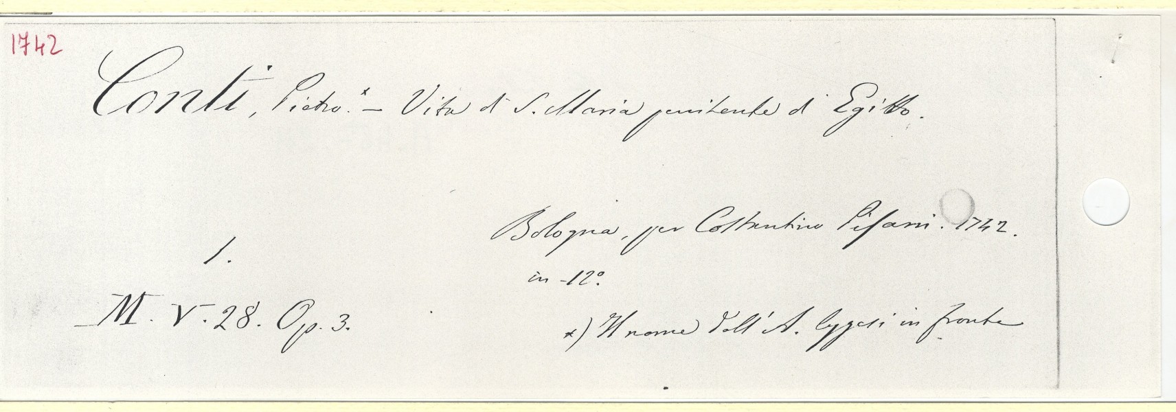 Scheda n. 5517 Anno: 1742 - Tipografo: Pisarri Costantino (Es. n. 1) | <indietro avanti > |