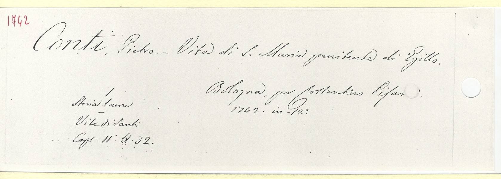 Scheda n. 5518 Anno: 1742 - Tipografo: Pisarri Costantino (Es. n. 2) | <indietro avanti > |