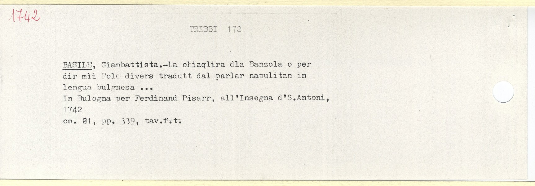 Scheda n. 5523 Anno: 1742 - Tipografo: Pisarri Ferdinando (Es. n. 4) | <indietro avanti > |