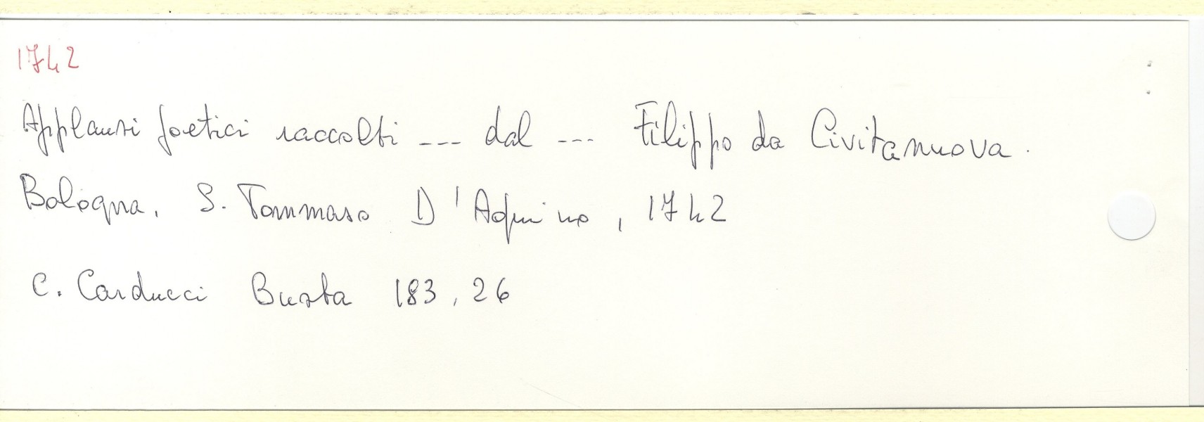 Scheda n. 5528 Anno: 1742 - Tipografo: Pisarri Ferdinando (Es. n. 3) | <indietro avanti > |