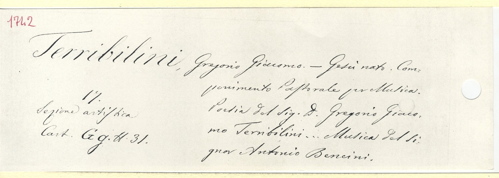 Scheda n. 5546 Anno: 1742 - Tipografo: Pisarri Ferdinando | <indietro avanti > |