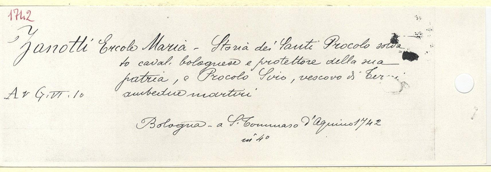Scheda n. 5548 Anno: 1742 - Tipografo: Pisarri Ferdinando (Es. n. 1) | <indietro avanti > |