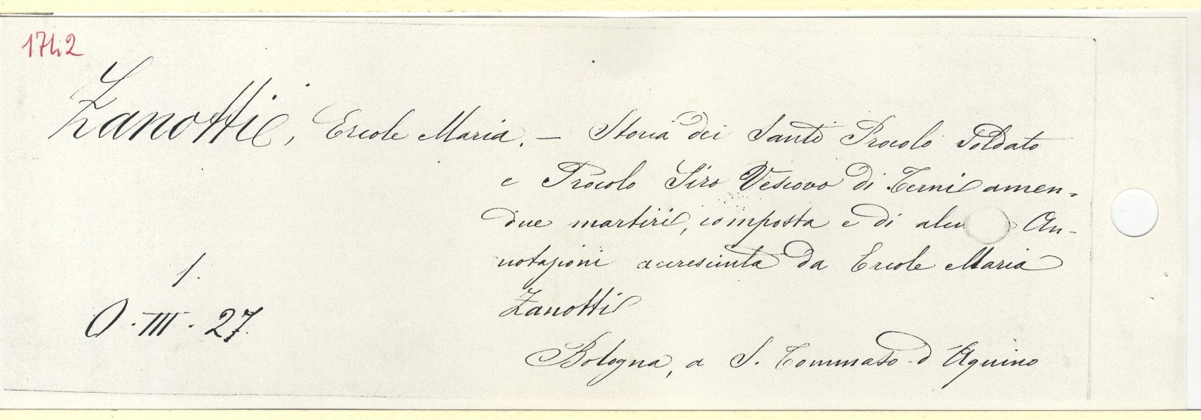 Scheda n. 5549 Anno: 1742 - Tipografo: Pisarri Ferdinando (Es. n. 2) | <indietro avanti > |