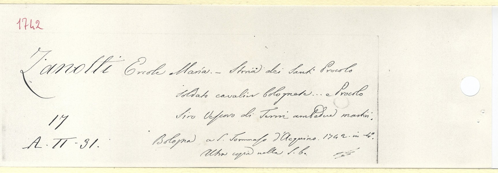 Scheda n. 5551 Anno: 1742 - Tipografo: Pisarri Ferdinando (Es. n. 4) | <indietro avanti > |